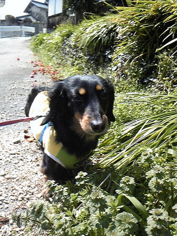 少しまばゆい日差しの中をプーとお散歩してきました