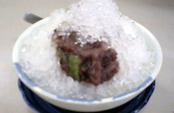 そう、今日の事務所のおやつは、「中将餅入り練乳カキ氷♪」