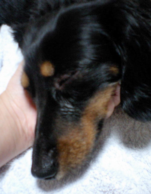今日は抗生剤と角膜保護の点眼を出してもらいました。次回は土曜日に診てもらいます。どうぞなおりますように!目をつぶっているので少しわかりずらいですが・・・