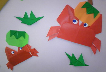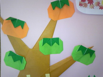 なったここ奈良!もう家ではストーブを出し冬支度をしはじめています。今月のウエルカムボード用の折り紙は「おりがみ通信vol 21に掲載されている「さるかに合戦」を参考に